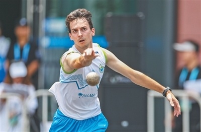 精准类项目 斯洛文尼亚队运动员在大金属地掷球混合双人连续抛击资格赛预赛中。 新华社记者 张丽芸摄