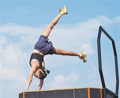艺术与体育舞蹈类项目 中国队运动员商春松在跑酷女子自由式决赛中。 本报记者 巩 晗摄