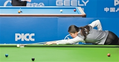 精准类项目 中国队运动员白雨露在台球女子斯诺克6红球比赛中。 本报记者 蒋雨师摄